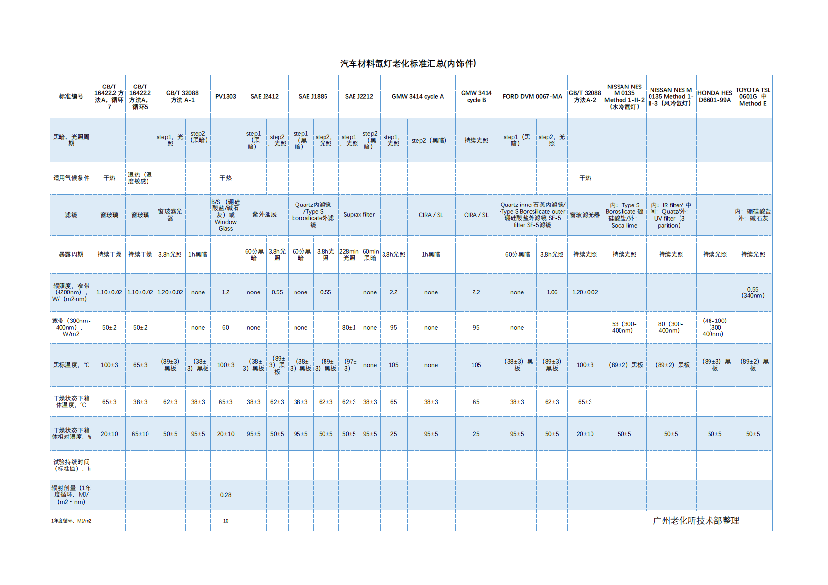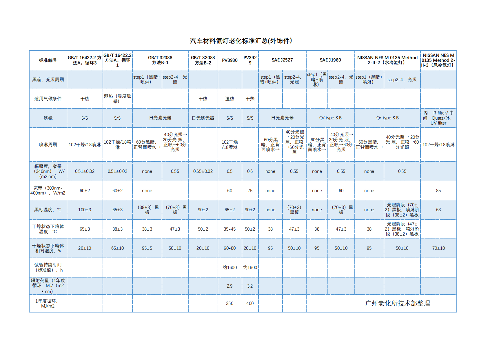技術(shù)文檔4:汽車(chē)材料氙燈老化標準匯總